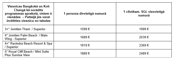 Bangkoka 2 naktis – Kvaj upe 1 nakts – Pattaija 4 naktis – Kočang sala 5 naktis