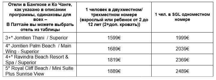 Цена указана в EUR /на 1 человека/ номера начальной категории (Количество мест ограничено)!